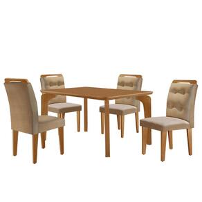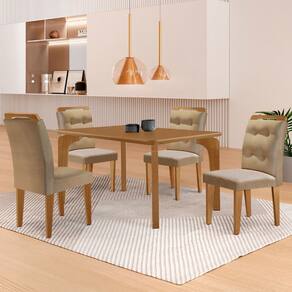 Mesa de Jantar Liz 120cm MDF Canto copo e com 4 Cadeiras Carol - Bege