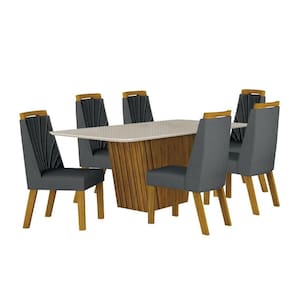 Mesa de Jantar Liz 180x90 Freijó Off White com 6 Cadeiras Freijó Joli Chumbo – Leifer Móveis