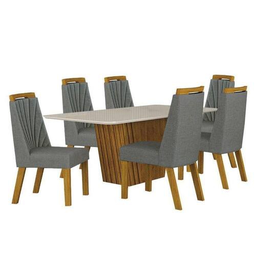Mesa de Jantar Liz 180x90 Freijó Off White com 6 Cadeiras Freijó Linho Cinza Leifer Móveis