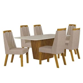 Mesa de Jantar Liz 180x90 Freijó Off White com 6 Cadeiras Freijó Linho Palha Leifer Móveis