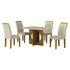 Mesa de Jantar Lorena Plus 120x80 Freijó Off White com 4 Cadeiras Doha Joli Palha – Leifer Móveis