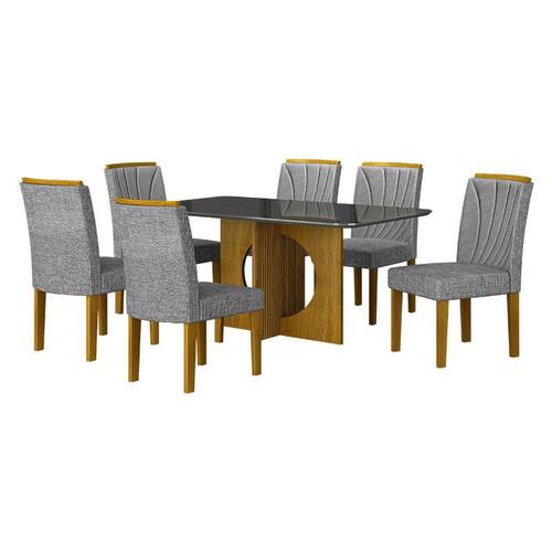 Mesa de Jantar Lorena Plus 160x80 Freijó Chumbo com 6 Cadeiras Lorena Linho Cinza – Leifer Móveis