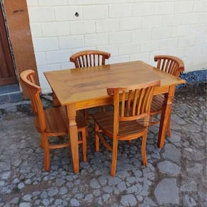 A Mesa Rústica em Madeira De Demolição 120x80cm com 04 Cadeiras Leque da Sudeste Rústico é para você que procura uma peça tradicional e confortável. Altamente resistente e durável, a mesa possui 1,20 m de comprimento e 0,80 cm de largura, acompanha 4 cadeiras com encosto abaulado, gerando conforto com sensação de abraçar suas costas. Produzida em madeira de demolição. É perfeita para reunir a familia em áreas gourmet, áreas de churrasco, cozinhas e salas de jantares . Deixe seu ambiente ainda mais bonito e sofisticado com A Mesa e as cadeiras em Madeira de Demolição da Sudeste Rústico.