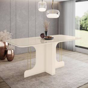 Tampo retangular em MDF 25 mm com sobreposição de vidro 4 mm, que garante mais resistência e durabilidade à peça. Tampo canto arredondado com vidro.