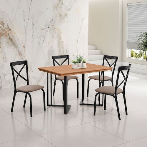 Características: Modelo: Michigan Tipo: Mesa de Jantar Material do Tampo: Madeira Maciça Material da Base: Ferro Cor do Tampo: Castanho Cor da Base: Preta Design moderno e funcional