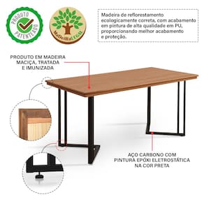 Características: Modelo: Michigan Tipo: Mesa de Jantar Material do Tampo: Madeira Maciça Material da Base: Ferro Cor do Tampo: Castanho Cor da Base: Preta Design moderno e funcional