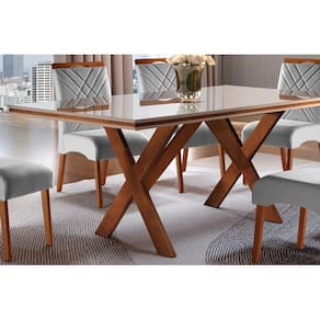 Mesa de Jantar Moderna - Nobre-2,0x1,0m - Requinte Salas A mesa de jantar Nobre tem um design individualizado, que une modernidade, beleza e sofisticação, produzida com os materiais da mais alta qualidade para atender bem os seus usuários. Ela tem a estrutura da base em madeira maciça Tauari, ecologicamente correta, o tampo em MDF 45mm de espessura, vidro de 3mm sobreposto, e quinas canto tick que traz uma modernidade a mais. Um escândalo de elegância, compre logo a sua e curta os momentos em família! Faz parte do anúncio: 1 Mesa de Jantar Moderna Base Madeira Maciça - Nobre - Requinte Salas Obs: Objetos decorativos não inclusos. Particularidades da Mesa de Jantar Características: - Base em madeira maciça Tauari seca em estufa e imunizada - Madeira ecologicamente correta - Tampo em MDF com 45mm de espessura - Vidro 3mm - Tampo retangular com quinas retas Dimensões da Mesa: Altura: 76 centímetros Largura: 2,0 metros Profundidade: 1,0 metro Informações Importantes: -Produtos podem apresentar diferenças de tonalidades entre a foto na tela e o produto real, devido a calibração de cor de tela. -Limpar com flanela ou pano macio. Não utilizar álcool. Não utilizar produtos abrasivos ou corrosivos -Nós prezamos pela qualidade da entrega em primeiro lugar, trabalhamos com transportadoras altamente selecionadas e os melhores materiais de embalagem. -Todos os itens já vão embalados -A mesa vai semi montada. Não necessita da montagem de um profissional, ficando ao critério do cliente. -Não responsabilizamos pela montagem. -Certifique-se de que o produto caiba em elevadores e vãos de escadas, não fazemos içamentos ou desmontagens de produtos. Quaisquer despesas deste tipo ficam a cargo do cliente -Garantia de 3 meses contra defeitos de fabricação. Marca: Requinte Salas