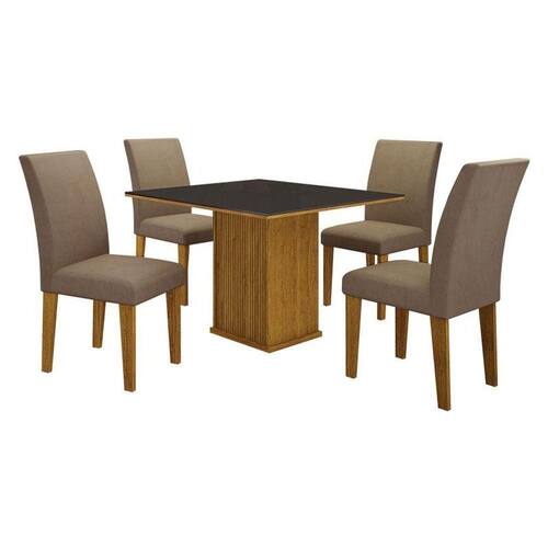 MDFMesa de Jantar Napoli 90x90 Reto Freijó Decor com 4 Cadeiras MDF Freijó Joli Camurça Leifer Móveis