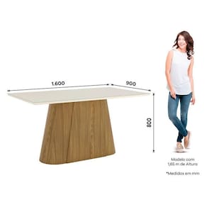 Mesa de Jantar Olivia 160 cm Canto Reto com Vidro Nature Off White Henn