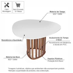 Beleza Durável em MDF: A mesa é construída 100% em MDF de 15 mm, garantindo resistência e estabilidade inigualáveis. O material é de alta qualidade, adaptando-se a diversos estilos, do moderno ao clássico.