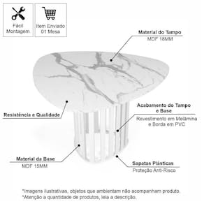 Beleza Durável em MDF: A mesa é construída 100% em MDF de 15 mm, garantindo resistência e estabilidade inigualáveis. O material é de alta qualidade, adaptando-se a diversos estilos, do moderno ao clássico.