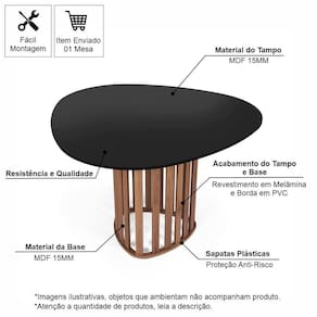 Beleza Durável em MDF: A mesa é construída 100% em MDF de 15 mm, garantindo resistência e estabilidade inigualáveis. O material é de alta qualidade, adaptando-se a diversos estilos, do moderno ao clássico.