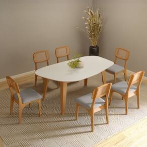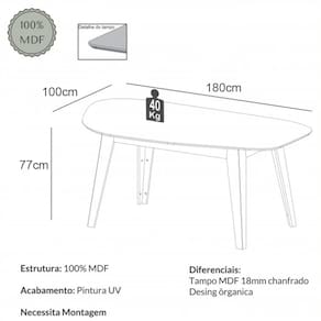Características: Estrutura 100% MDF Acabamento em Pintura UV Design Orgânico Tampo Chanfrado Acomoda até 6 Lugares NÃO ACOMPANHA CADEIRAS