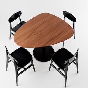 Especificações:Tampo em formato orgânico, de MDF 20 mm, com acabamento em pintura UV e nas laterais, pintura PU.