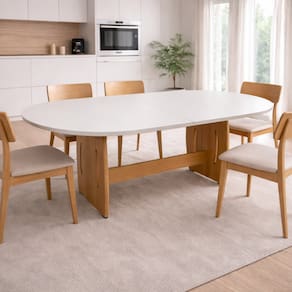 Transforme sua sala de jantar em um ambiente elegante, acolhedor e cheio de estilo com esta Mesa de Jantar Oval. A mesa possui formato oval com bordas suavemente arredondadas, conferindo um visual sofisticado e contemporâneo ao ambiente. Sua base robusta com detalhes vazados garante estabilidade e um toque de design diferenciado que se destaca em qualquer decoração.