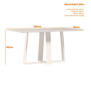 Mesa de Jantar para 6 Lugares 1,60m Tampo Mdf com Vidro Rubi Ypê/Preto - New Ceval