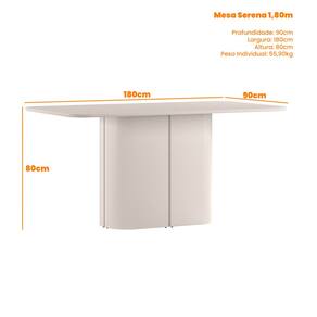 Mesa de Jantar para 8 Lugares 180cm Tampo Mdf com Vidro Serena Off White - New Ceval