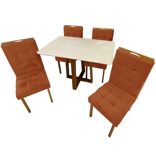 Mesa de Jantar Pedro 120x80cm com 4 Cadeiras Art Assentos Cor Off White com Assento Cobre