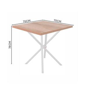Dimensões da mesa: Largura 75 cm, Profundidade 75 cm, Altura 74 cm.