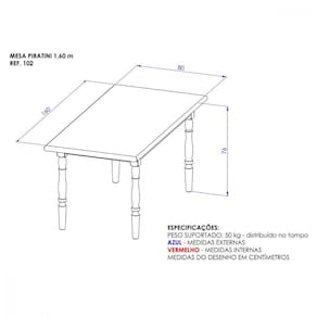 Altura: 76 cm | Largura: 160 cm | Comnto: 80 cm