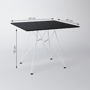 Mesa De Jantar Eames Eiffel Quadrada 90cm Preta Com 4 Cadeiras Pretas Base Ferro BrancoO Jogo de Mesa 4 Cadeiras Eames Eiffel se destaca pelo design moderno e sofisticado. A Cadeira Eames Eiffel é confeccionada em polipropileno, sua base é em ferro, o que confere total resistência e conforto. O Jogo de Mesa 4 Cadeiras Eames Eiffel da vida ao ambiente além de combinar com todos os tipos e cores de móveis.CARACTERISTICASTipo: ConjuntoModelo: EiffelFerro: BrancoDIMENSÕES DO PRODUTOCadeiraCor: PretoAltura: 85 cmLargura: 47 cmProfundidade: 50 cmAssento x Chão: 45 cmContém: 04 cadeirasMesa:Cor: PretoAltura: 76 cmLargura: 90 cmProfundidade: 90 cmObs: Imagens Meramente IlustrativaMesa de Jantar Eames Eiffel Quadrada 90cm Preta com 4 Cadeiras Pretas Base Ferro Branco