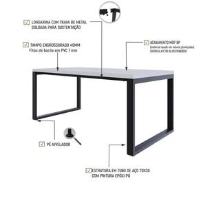 Sobre o ProdutoMesa de Jantar Queens 180x90x77cm QEMJ9180 çoDescrição do Produto:A mesa de jantar Queens QEMJ9180 é a expressão perfeita da fusão entre elegância e robustez, ideal para ambientes modernos e contemporâneos. Com dimensões de 1,80x0,90m, esta peça impressiona pela sua presença marcante. O tampo engrossurado de 40mm, finalizado com fitas de PVC de 01mm, oferece uma superfície resistente e de excelente acabamento. A estrutura em tubos de aço 70x30mm, complementada por longarinas produzidas com tubos 30x50mm, garante estabilidade e durabilidade, enquanto o design minimalista proporciona um toque moderno e sofisticado a qualquer espaç linha City_Scape captura a sofisticação e o estilo das grandes metrópoles, trazendo móveis inspirados em bairros e cidades icônicas. Com design moderno e cosmopolita, cada peça reflete a elegância urbana, conectando ambientes contemporâneos à atmosfera vibrante das cidades ao redor do mundo. Os tampos engrossurados em MDP BP recobertos com fitas de borda em PVC de 01mm, garantem resistência e durabilidade com um acabamento refinado. As estruturas em aço com soldas a laser e suavizadas, possuem acabamento em pintura epóxi que confere solidez e um visual moderno, garantindo a longevidade e a robustez das peç Inclusos:1 Mesa de JantarDimensões dos Produtos:Mesa de Jantar Queens 180x90x77cm QEMJ9180 ço: 180 x 90 x 77 cmInformações Logísticas (Comp. X Prof. X Alt.) 188 x 103,5 x 6 cm - Peso: 29,49 94 x 77 x 18 cm - Peso: 8,6 KgPeso Total: 38,09 KgObservações:Não acompanha acessórios decorativos. Imagens meramente ilustrativas.Informações Técnicas / Características:- Cor do Produto: ço- Cor do Predominante: Revestido- Marca: Metalig- Modelo: QEMJ9180- Linha: City_Scape- Material: Mdp- Material da Estrutura / Pés: Aço- Acabamento: BP- Escala de Brilho: Fosco- Fita de Borda: Pvc - Possui Gavetas: Não - Possui Pés: 2- Pés Niveladores: Sim - Acabamento Estrutura: Epóxi-Pó- Formato: Retangular -Observações: Possui 02 Lomgarinas horizontais de aço.- Suporta Até (kg): 100kg- Comprimento: 180cm- Profundidade: 90cm- Altura: 77cm - Peso Lí.: 35,94Kg- Recomendações de Uso, Manutenção e Limpeza: Para a limpeza, utilize flanela seca ou pano macio levemente umedecido em água. Utilize um pano seco em seguida. Evite com produtos químicos (solventes, thinner, acetona, etc) e não utilize nenhum tipo de esponja de aço.- Necessita de Montagem: Sim / Acompanha Manual de Montagem- Complexidade da Montagem: Média: pode ser montado por mais de uma pessoa e/ou necessite de maior conhecimento para montagem.- Garantia: 01 ano Comprimento: 180 cm | Altura: 77 cm | Marca: Compace | Largura: 90 cm | Quantidade máxima de pedido: 1 | Modelo: QEMJ9180 | Necessita montagem: Sim | Quantidade de volumes: 2 | Profundidade: 90 cm | Produto: Mesa de Jantar | Cômodo indicado: Cozinhas | material da estrutura: Aço | Cor: Multicolorido | Tonalidade: Multicolorido | Industrial: Requer Baterias | Não: Certificação Externa | Manual de montagem e kit acessórios: | Sim: Preço de tabela | Fabricante | Compace: do Modelo | QEMJ9180: de Caixas | 1: da Peça Cor: Branco TX/