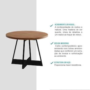 A Mesa de Jantar Átria Redonda para 4 lugares se encaixa facilmente em ambientes com personalidade, adaptando facilmente em diferentes tamanhos de ambientes traduzindo a essência e de quem a utiliza. Trazendo a sensação de aconchego para o ambiente com a junção de acabamento em amadeirado e complementos em tubo de aço redondo.