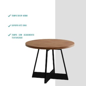 Medidas: Largura: 100 cm | Altura: 76,5 cm | Profundidade: 100 cm Peso: 19,8 Kg Tampo: BP 40mm Estrutura: Tubo de Aço 30x20mm e travessas em MDP