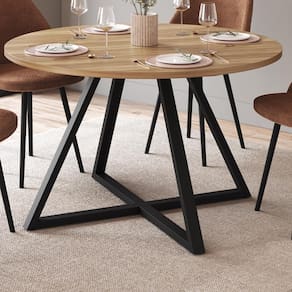 Mesa de Jantar Office 25933, design moderno com estrutura ideal para jantares especiais! Possui tampo redondo em MDP (25 mm) com acabamento BP. A base é composta por pés metálicos em aço (pintura epóxi) dispostos em formato geométrico triangular cruzado, garantindo maior estabilidade e elegância ao móvel. Acomoda até 4 cadeiras e conta com sapatas reguláveis para melhor nivelamento em diferentes tipos de piso. Produto será entregue em 02 volumes.