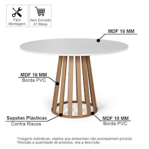 • 1 Mesa de Jantar Redonda 4 Lugares 90cm em MDF Gabi 1 Manual de Montagem 1 Kit de Parafusos e chave para montagem.