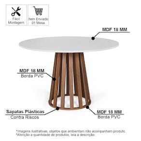 • 1 Mesa de Jantar Redonda 4 Lugares 90cm em MDF Gabi 1 Manual de Montagem 1 Kit de Parafusos e chave para montagem.