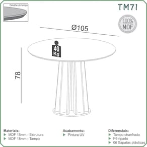 Itens Inclusos: 1 Mesa de Jantar (TM71)