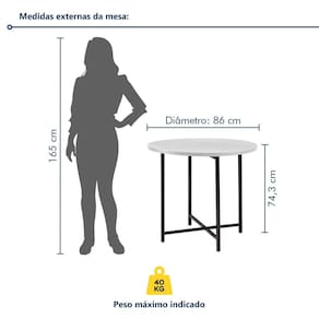A mesa para sala de jantar redonda é segura? Claro, é feita com material de qualidade e seguro. Acabamento: Pintura Acabamento da Base: Pintura Acabamento do Tampo: Pintura Ambiente Principal: Sala de Jantar codigo_ean: 7900288185112 Complexidade da Montagem: Baixa: pode ser montado por uma pessoa sozinha Cor: Preto/Branco Cor do Produto: Preto/Branco Design da Base: 4 Pés Dobrável: Sim Escala de Brilho: Semi-Brilho Espessura do Tampo: 18 mm Extensível: Não Itens Inclusos: 1 Mesa, Kit Ferragens e Manual de Montagem Linha ou Coleção: Pop Manual de Montagem e Instalação: https://product-hub-prd.madeiramadeira.com.br/169940550/documents/e14791f8-571f-49a5-a6b5-b4bf84a1399030355127321751375406434.pdf Marca: Prima Design Material da Base: Aço Material do Tampo: MDF Material Principal: Aço Medida da Base (A x L x P): 72,5,3x86x86 Medida da Mesa (A x L x P): 74,3x86x86 Medida do Tampo (L x C x E): 86x86x18 Necessita Montagem: Sim Origem do Produto: Nacional Peso: 19 kg Possui Portas: Não Possui Rodízio: Não Possui Vidro: Não Recomendações de Uso, Manutenção e Limpeza: A estrutura deve ser limpa utilizando pano seco de algodão ou flanela. Se necessário, utilize panoumedecido apenas com água, secando o móvel em seguida. Não utilize solvente, álcool, acetona, lustra móveis, produtos abrasivos e outros produtos que contenham soda e ou ácidos para limpar e tirar manchas dos móveis. Não expor os móveis à luz solar e ambientes com umidade relativa elevada. Manter a estrutura metálica limpa, utilizando pano seco ou cera a base de silicone. Sistema de Montagem: Parafusos Suporta Até (kg): 40 kg Marca: Não Informado