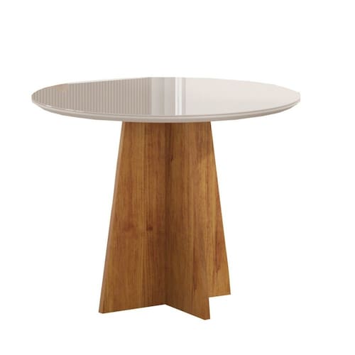Mesa de Jantar Redonda 90cm com Tampo de Vidro Celeste Viero A Mesa Celeste Redonda 90cm e ideal para 4 lugares e valoriza ambientes compactos com funcionalidade e estilo. A base em MDP garante estabilidade, enquanto o tampo em MDF com vidro colado de 4 mm oferece durabilidade e acabamento sofisticado. A pintura UV semibrilho facilita a limpeza e realca o visual. Com bordas suaves para mais seguranca e capacidade para ate 50 kg, e perfeita para refeicoes em familia ou encontros com amigos.