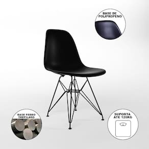A Mesa de Jantar Redonda Clips com as Cadeiras Eiffel é a escolha perfeita para você que está em busca de um produto sofisticado e muito versátil! O Conjunto possui o diferencial de ser um produto compacto e prático, podendo ser incorporado facilmente nos mais diversos ambientes, como: cozinhas, restaurantes, varandas ou até áreas de festas!CaracterísticasTipo: Conjunto Mesa e 4 CadeirasModelo: ClipsCor do Tampo: PretoCor do Assento: PretoBase Ferro: PretoDIMENSÕES DO PRODUTOCadeira:Altura: 85cmLargura: 47cmComprimento: 50cmMesa:Altura: 85cmDiâmetro: 90cmATENÇÃOAS IMAGENS SÃO MERAMENTE ILUSTRATIVAS E PODEM SOFRER VARIAÇÕES DE COR E PEQUENOS DETALHES DE ACORDO COM O SEU MONITOR, ILUMINAÇÃO DO AMBIENTE E ATÉ MESMO A SUA PERCEPÇÃO VISUAL.Mesa de Jantar Redonda 90cm Preta Clips 3 PÃs com 4 Cadeiras Eames Eiffel Pretas Ferro Preto