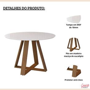 ESPECIFICAÇÕES TÉCNICA • Altura: 79 cm • Diâmetro: 110 cm • Base: Madeira maciça (eucalipto) • Tampo: MDF 18mm