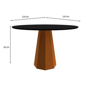 mesa de jantar redonda com tampo de vidro isis preta e ype 120 cm - Marrom