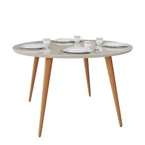 Mesa de jantar redonda compacta para 4 lugares com pés palito. Um móvel elegante e funcional, ideal para apartamentos, cozinhas ou salas menores. Perfeita para refeições do dia a dia e encontros em família, trazendo praticidade e charme ao ambiente.