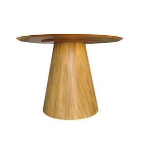 Mesa de Jantar Cone Redonda 130cm Base Madeira cinamomo Tampo cinamomo