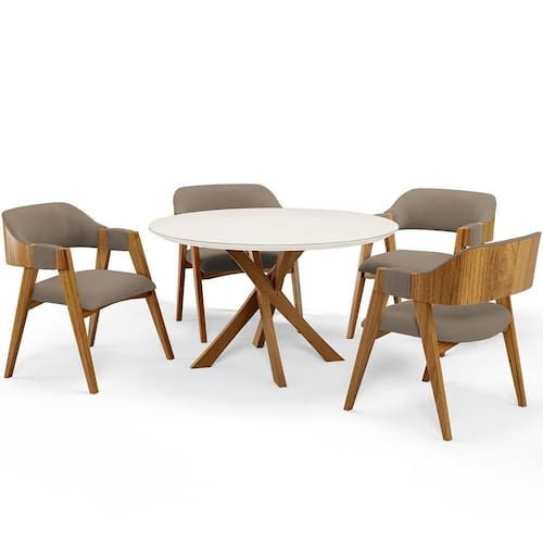 Mesa De Jantar Redonda Cora 120cm Off White M04 Com 04 Cadeiras Living Suran Bouclê Bege - Lyam