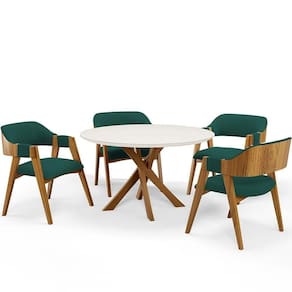 Mesa De Jantar Redonda Cora 120cm Off White M04 Com 04 Cadeiras Living Suran Bouclê Verde - Lyam