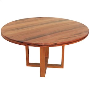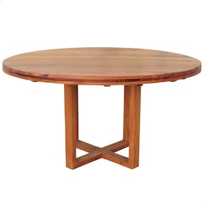 Mesa de jantar redonda 120 cm de diâmetro. Fabricada em madeira maciça de lei com acabamento natural envernizado, garantindo resistência, durabilidade e requinte para seu ambiente. Ideal para reunir família e amigos com praticidade e estilo. Altura 80 cm, peso 90 kg. Montagem simples dos pés.