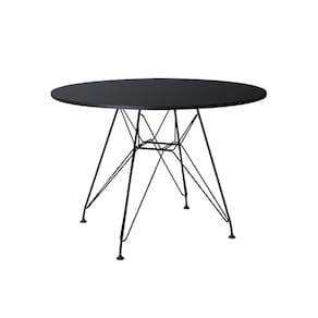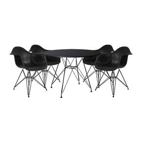 Mesa De Jantar Redonda Eames Eiffel 90cm Preta Com 4 Poltronas Pretas Ferro Preto O Conjunto de Mesa Eames Eiffel e Poltrona Daw se destaca pelo design moderno e sofisticado. Com base em ferro que confere total resistência, garantindo melhor durabilidade, sendo uma ótima escolha para quem busca conforto e design único.Tipo: ConjuntoModelo: DawCor do Tampo: PretoCor do Assento: PretoCARACTERÍSTICASAssento: PolipropilenoTampo: PretoBase: FerroGarantia: 90 DiasDIMENSÕES DA POLTRONAAltura: 80cmAssento até o chão: 40cmBraço do assento até o chão: 65cmLargura: 38cmComprimento: 38cmSuporta até: 120kgDIMENSÕES DA MESAAltura: 76cmDiâmetro: 90cmRECOMENDAÇÕESLimpeza: Utilize um pano macio levemente úmido.Necessita montagem.ATENÇÃOAS IMAGENS SÃO MERAMENTE ILUSTRATIVAS E PODEM SOFRER VARIAÇÕES DE COR E PEQUENOS DETALHES DE ACORDO COM O SEU MONITOR, ILUMINAÇÃO DO AMBIENTE E ATÉ MESMO A SUA PERCEPÇÃO VISUAL.