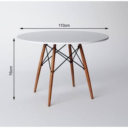 A Mesa Eiffel Eames Wood 110cm, além de proporcionar toda a sua funcionalidade, decora e alegra o ambiente com um estilo moderno e de extrema elegância. Mesa de Jantar Redonda 110cmCor: BrancaDiâmetro: 110cmAltura: 75cmTampo em MDFOBS: Montagem não inclusa. Acompanha manual de instruções e chave para a montagem.