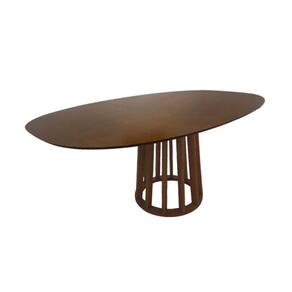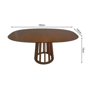 Mesa De Jantar Redonda Em Madeira 160x100cm Base Cone Palito Nogueira
