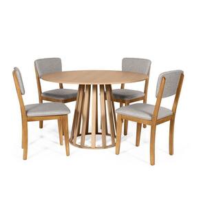 Mesa de Jantar Redonda Gabi com 4 Cadeiras Estofadas Madeira Maciça Ella