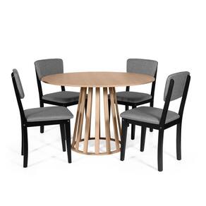 Mesa de Jantar Redonda Gabi com 4 Cadeiras Estofadas Madeira Maciça Ella
