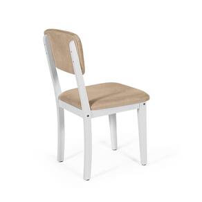 Mesa De Jantar Redonda Gabi Nat/bran Com 4 Cadeiras Estofadas Ella Branco/bege