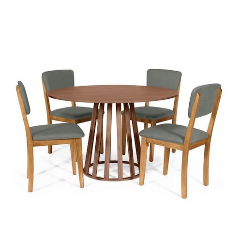 Mesa de Jantar Redonda Gabi com 4 Cadeiras Estofadas Madeira Maciça Ella
