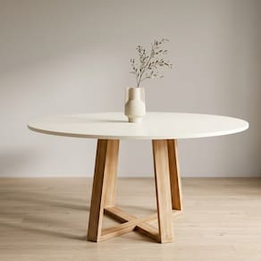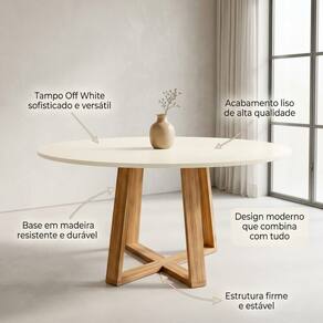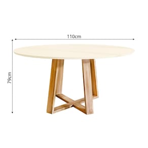 ESPECIFICAÇÕES TÉCNICA • Altura: 79 cm • Diâmetro: 110 cm • Base: Madeira maciça (eucalipto) • Tampo: MDF 18mm
